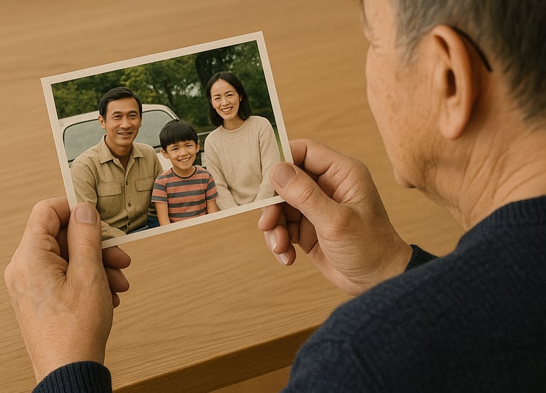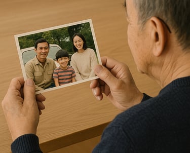 インタビューが始まると、普段は多くを語らない男性の表情が、だんだんと穏やかになっていきました。古い写真を見ながら、一つひとつの記憶が鮮やかに蘇り、家族への深い愛情や人生への想いが、自然と言葉になって溢れ出してきます。